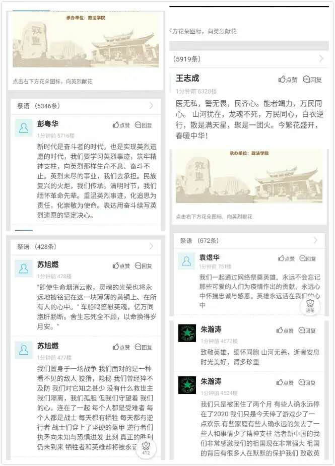 育学院全体师生观看了“抗疫牺牲群英谱”,英烈何辉、黄汉明、郑勇等的抗疫事迹让每位观看的师生备受感动。随后全体师生聆听了学校党委书记、校长彭永宏的讲话。彭永宏书记指出抗疫期间全国人民再一次向世界展示了“中国精神”“中国模式”“中国经验”的强大力量,并要求广大师生要坚持科学防控,共同维护校园安全,在清明节为所有在抗疫中逝去的英烈致悼!紧接着全体师生一同诵读了《清明祭抗疫英灵文》。早上10点整,全体师生在汽车、火车、舰船鸣笛,防空警报鸣响中默哀了三分钟,并向英烈献花、哀悼、祭拜、致悼文。