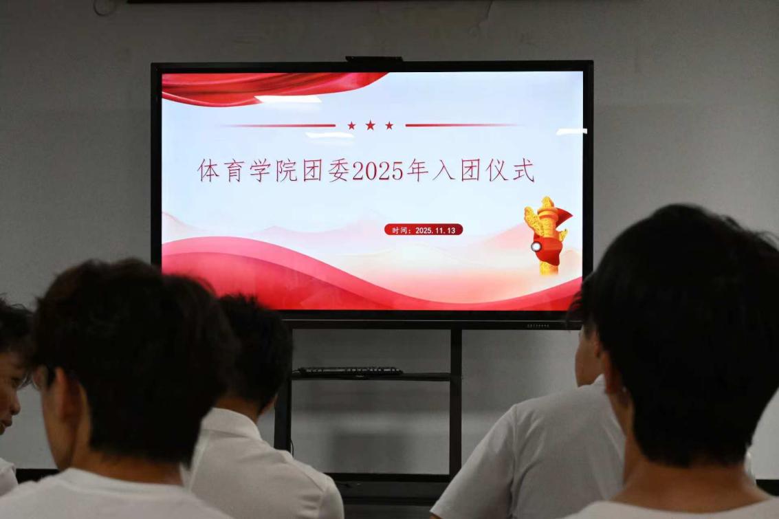 2025年11月13日,体育学院在北苑社区活动室举行2025年新团员入团仪式。体育学院团委书记杨晓群、团员代表及2025年新团员参加此次入团仪式。仪式由学院团委组织部魏伟城主持。