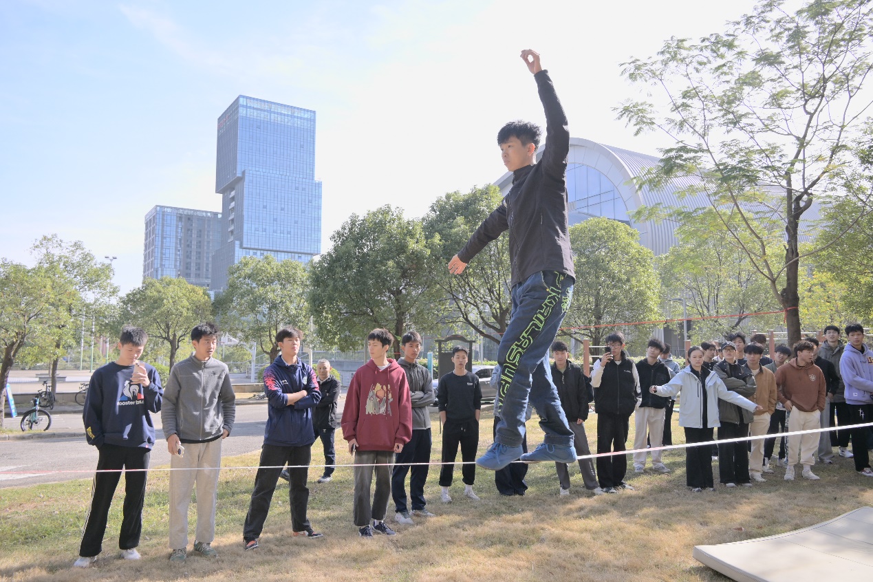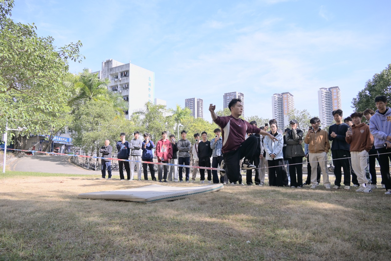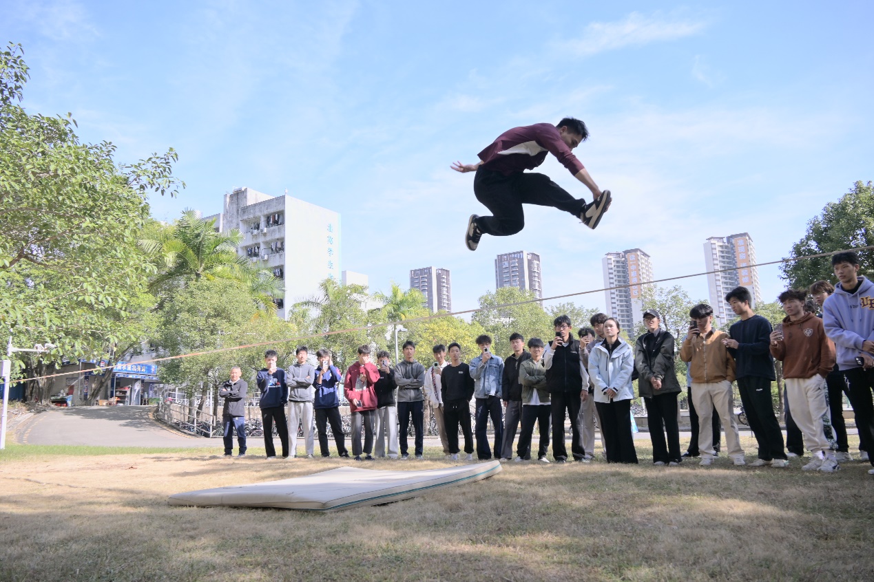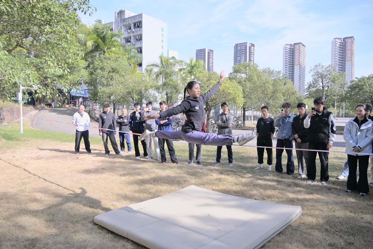 活动特邀了中国扁带运动奠基人翁家银教授、全国扁带锦标赛冠军、吉尼斯纪录保持者卢安敏老师,以及全国扁带锦标赛冠军黄家权、吴垂青等专业运动员,开展了理论知识和实践环节的培训。专业教师罗梦禅现场讲解扁带运动的理论知识,从运动起源、装备特性到基础技巧,全方位揭开扁带运动的神秘面纱;实践环节中,专业运动员展示低空花式技巧,他们专业的动作、流畅的节奏,让师生们直观感受到扁带运动的独特魅力。