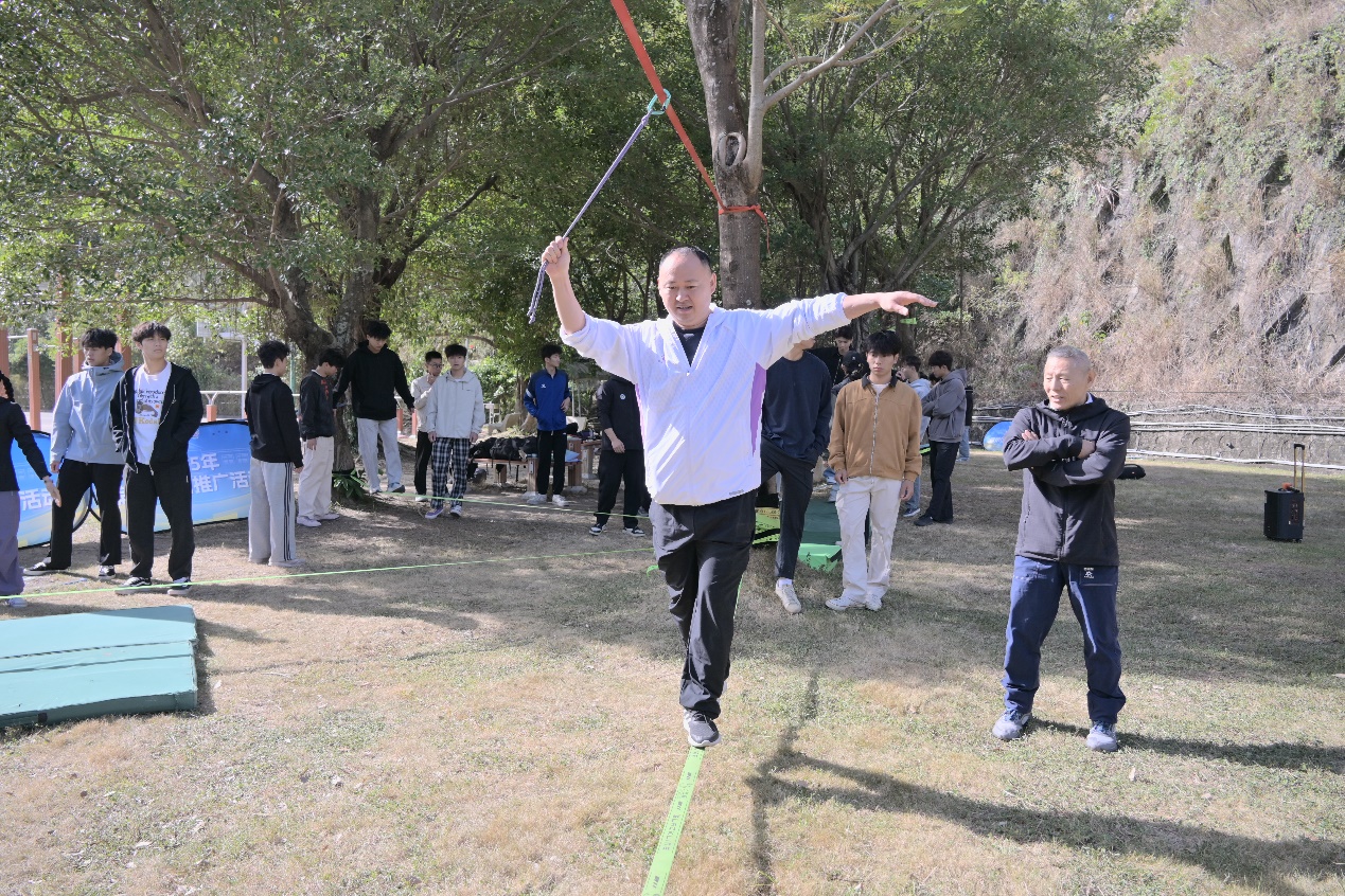 11月28日,国家体育总局登山运动管理中心2025年全国扁带运动推广活动在我校举办,扁带运动是一项新型体育运动,极具挑战性。此次活动以“扁带进校园”为核心,整合了专业教练教学、趣味挑战、文化传播等要素。这场以“挑战平衡极限,解锁校园新玩法”为主题的扁带推广活动,为我校师生带来了一场别开生面的“空中芭蕾”体验。