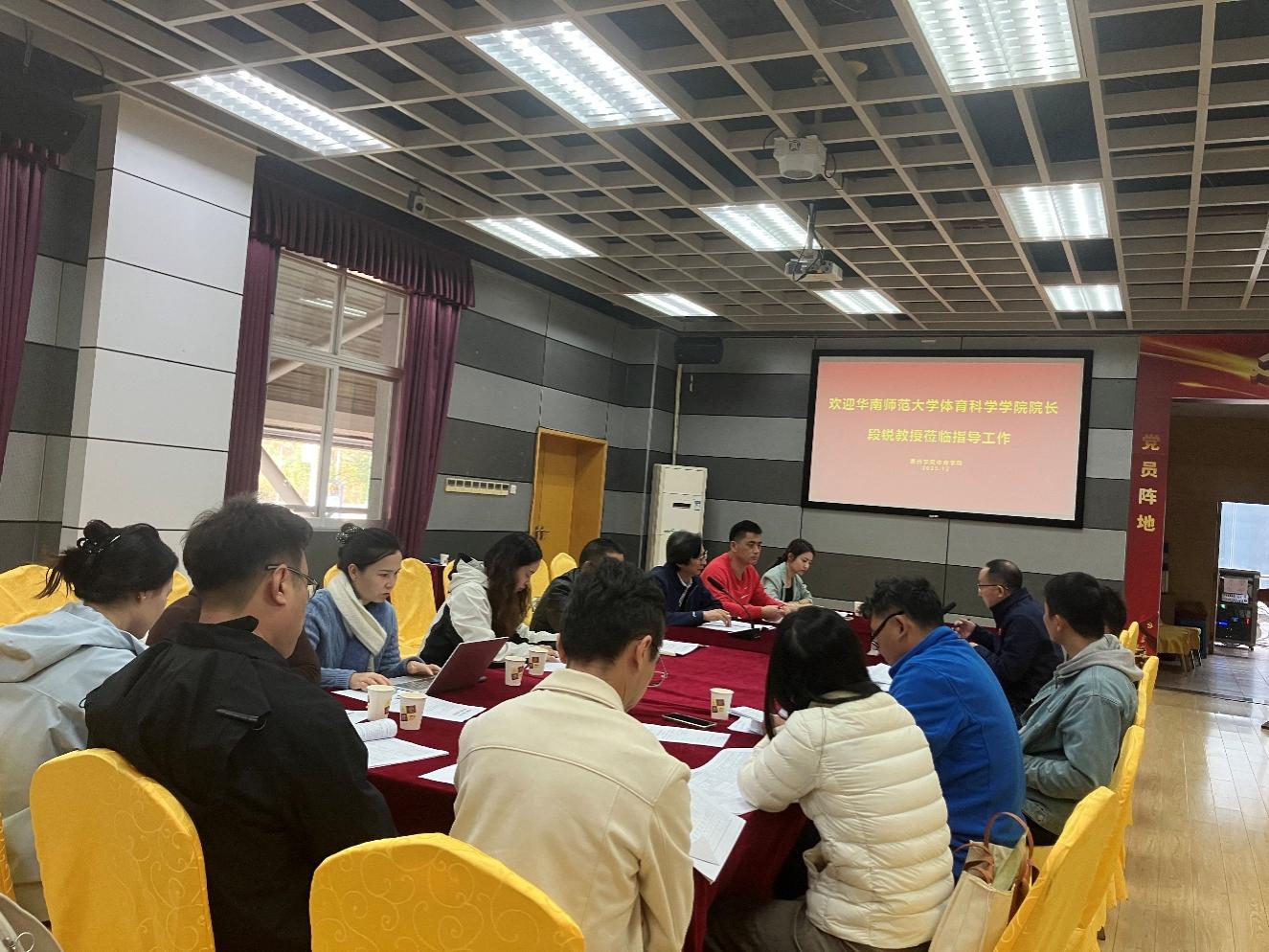 为扎实推进体育硕士专业学位授权点申报工作,2025年12月3日上午,体育学院特邀华南师范大学体育科学学院院长、博士生导师段锐教授莅临指导。体育学院党委书记赖常青、院长张宗国、副院长刘玉及申硕工作组成员等参会。