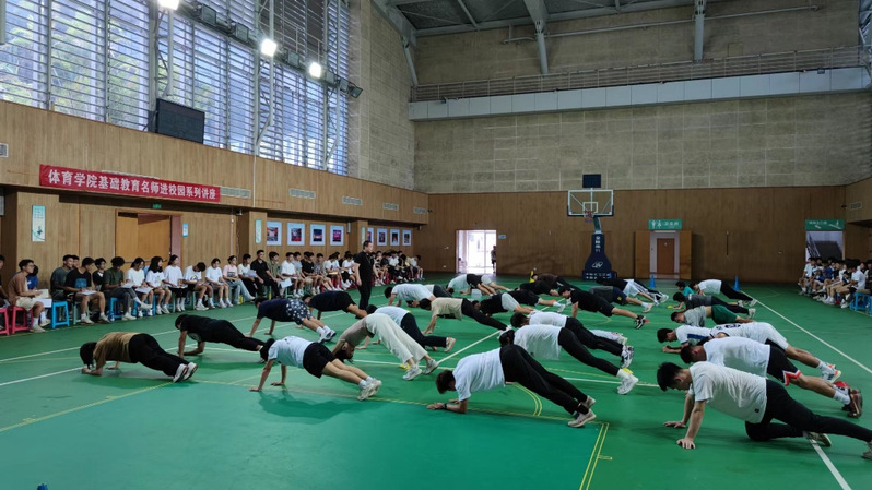 最后,张宗国副院长对本次课进行总结,提出要注重中小学学生生长发育特点和训练规律,教案设计、教学组织、练习密度、运动负荷的控制等要紧密结合课堂实际,不断完善自身教学技能,并对同学们未来工作和就业提出了针对性目标和方向。